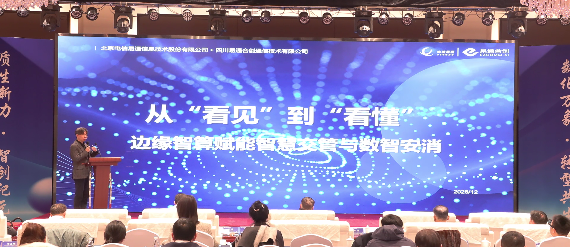 北京电信易通信息技术股份有限公司的产品技术中心总监刘晨围绕从“看见”到“看懂”:边缘智算赋能智慧交管与数智安消进行了演讲,华为技术有限公司的交通智慧化军团高级规划总监陈琢围绕数智技术赋能智慧交管进行了实践经验的分享,河北阳腾电子科技有限公司的总经理吴蒙南介绍了LED显示屏及智能系统解决方案,杭州云深处科技股份有限公司的政企行业负责人王烜针对足式机器人技术研究及安防应用探索的话题分享了实践经验,河北林鼎信息科技有限公司的创始人刘琳针对人工智能在交通安全和事故防范中的应用进行了介绍和案例分享。